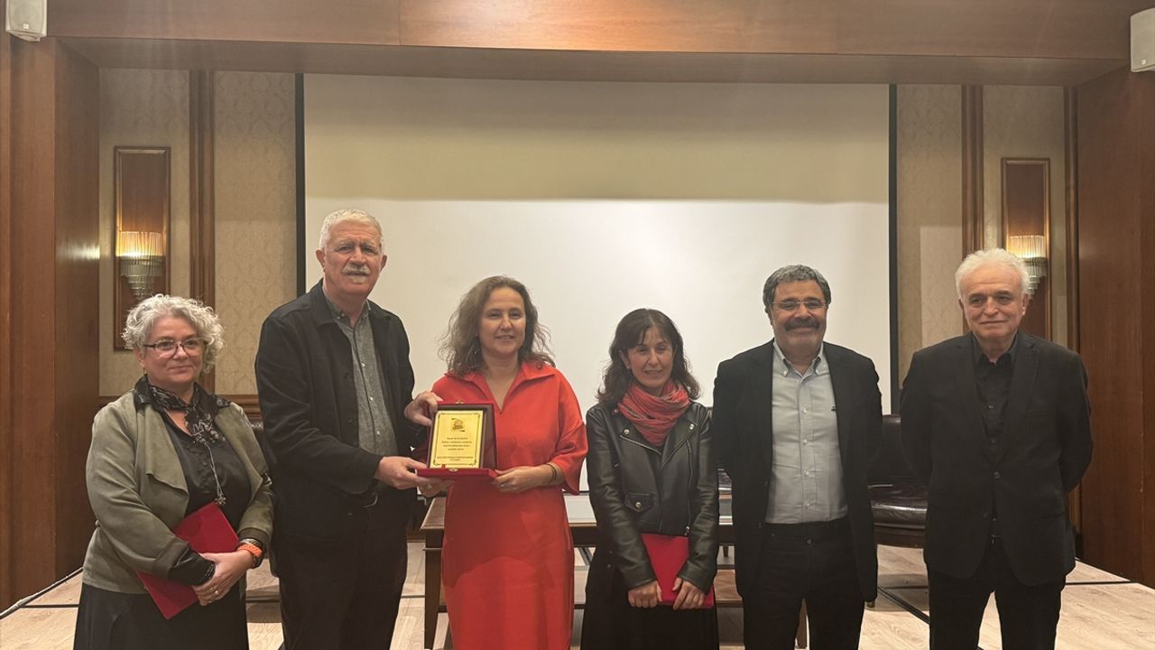 Akademisyen ve yazar Seval Şahin, Didem Ardalı Büyükarman ve Banu Öztürk, ödüllerini yazar Ahmet Ümit ile Adnan Özer'in elinden aldı.