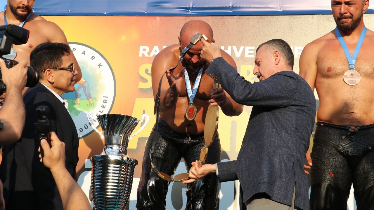 Orhan Okulu'nun kupasını TGGF Başkanı İbrahim Türkiş, altın kemerini ise Kocaeli Büyükşehir Belediye Başkanı Tahir Büyükakın verdi.