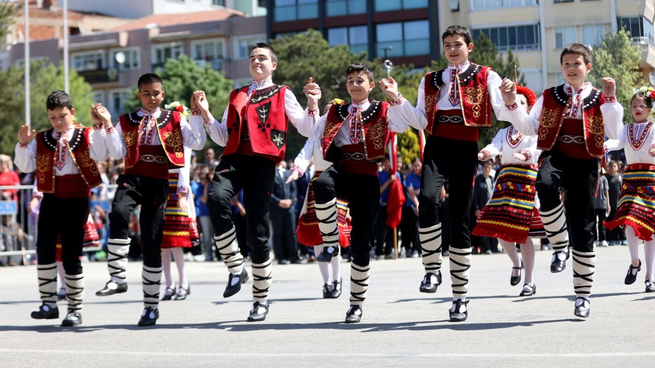 "Balkan Çocuk Şenliği" kapsamında Edirne'de ağırlanan öğrencilerin de yöresel kıyafetleriyle yer aldığı törene, protokol üyeleri, vatandaşlar ve çocuklar katıldı.