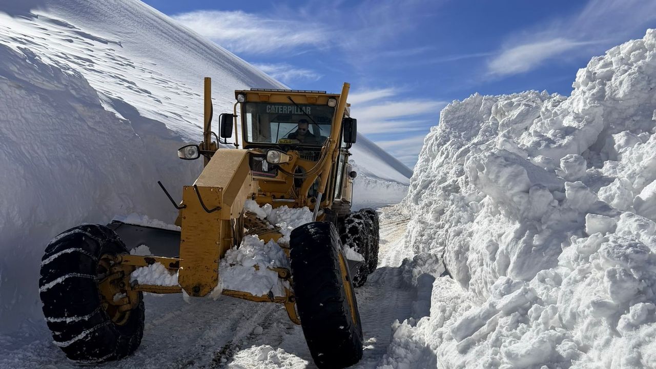 Behçet DALMAZ/VAN, (DHA)- VAN'ın Bahçesaray ilçesi Güneyyamaç Mahallesi'nin 3 bin 300 rakımdaki Özbeyli mezra yolunun ulaşıma açılması için çalışma başlatıldı. Son 3 ayda 4 kez açılan ancak yoğun yağışla yeniden kapanan yolda kar kalınlığı yer yer 3 metreyi aşarken, kar kütleleri ise iş makinelerinin ilerlemesini güçleştiriyor.