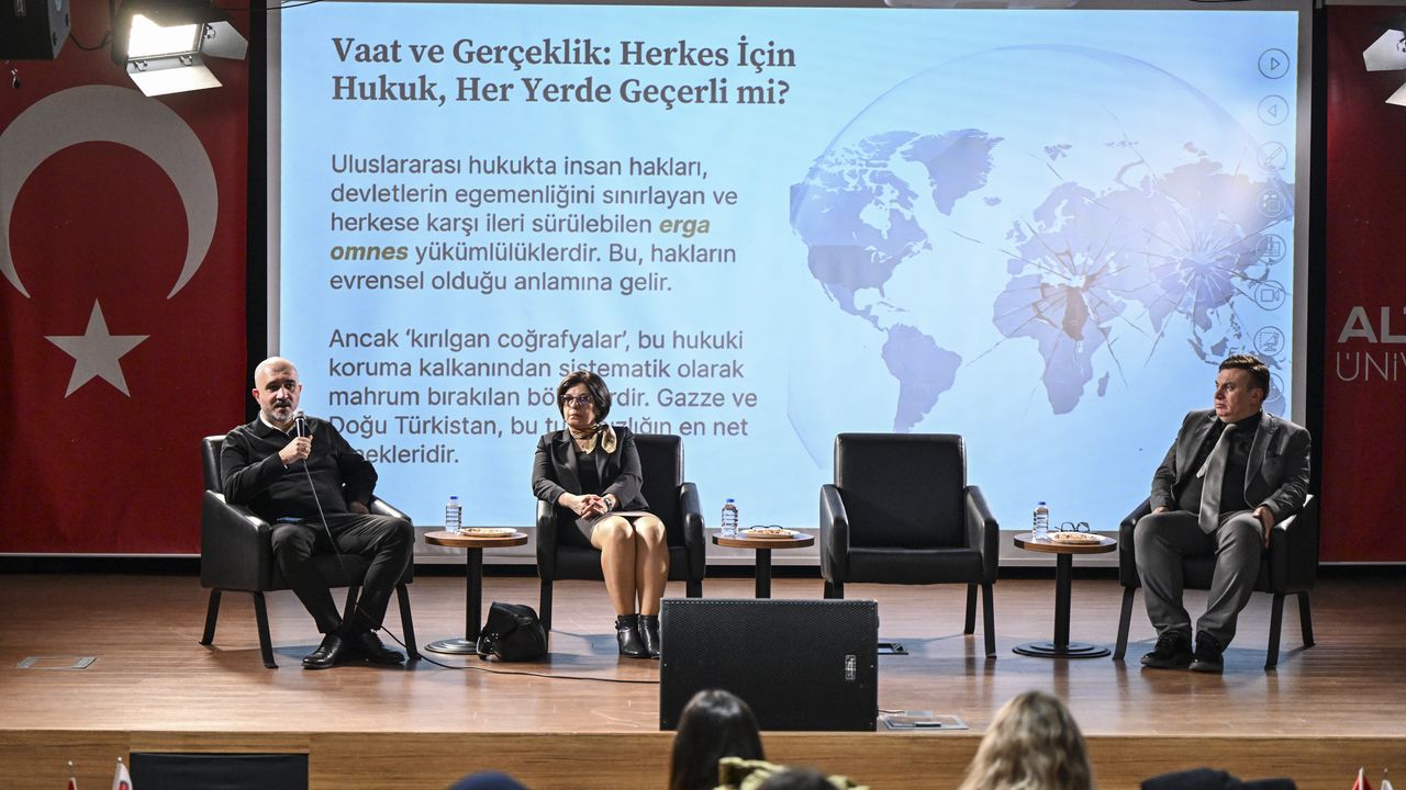 Altınbaş Üniversitesi 100. Yıl Konferans Salonu'nda düzenlenen sempozyumda 'Kırılgan Coğrafyalarda İnsan Hakları Kavramı' başlıklı sunum yapan Çanakkale Onsekiz Mart Üniversitesi Siyasal Bilgiler Fakültesi Öğretim Üyesi Doç. Dr. Fatih Fuat Tuncer, Gazze'de yaşananlara ve uluslararası hukukun tutumuna değindi.
