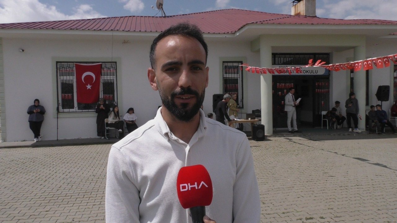 Aziz ÖNAL/SOLHAN (Bingöl), (DHA)- BİNGÖL'ün Solhan ilçesindeki 7 öğrencili Murat Köyü İlkokulu'nda çalışan müdür ve öğretmen Mahsum Öztürk, çevre köylerdeki 70 öğrenciyi görev yaptığı okulda bir araya getirip, 23 Nisan programı düzenledi.