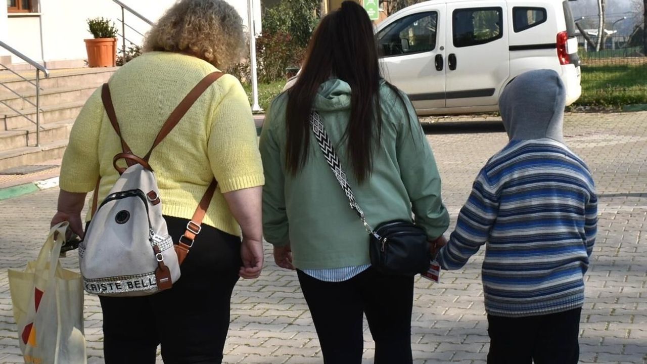 Bursa'da babası Umut K. (33) tarafından Alman annesi Rebecca S.'den (30) kaçırıldıktan 7 yıl sonra Mustafakemalpaşa Cumhuriyet Başsavcısı Yusuf Canik'in yürüttüğü soruşturma kapsamında, Bursa İl Emniyet Müdürü Kadir Gökce'nin talimatıyla kurulan 6 kişilik özel ekip tarafından babaannesi Hanife S. (60) tarafından alıkonulduğu evden kurtarılan Nazar S.'nin (8), ilk kez 'anne' dediği Rebecca S. ile el ele çekilen fotoğrafına DHA muhabiri ulaştı. Aile ve Sosyal Hizmetler İl Müdürlüğü'nde koruma altında bulunan Nazar S., dün DNA testi için Adli Tıp Kurumu Bursa Grup Başkanlığı'na ayrı ayrı gittiği annesi Rebecca S. ile el ele tutuşup yürürken görüntülendi. Bu kare, anne ile oğlunun 7 yıl sonra çekilen ilk fotoğrafı oldu. (DHA)