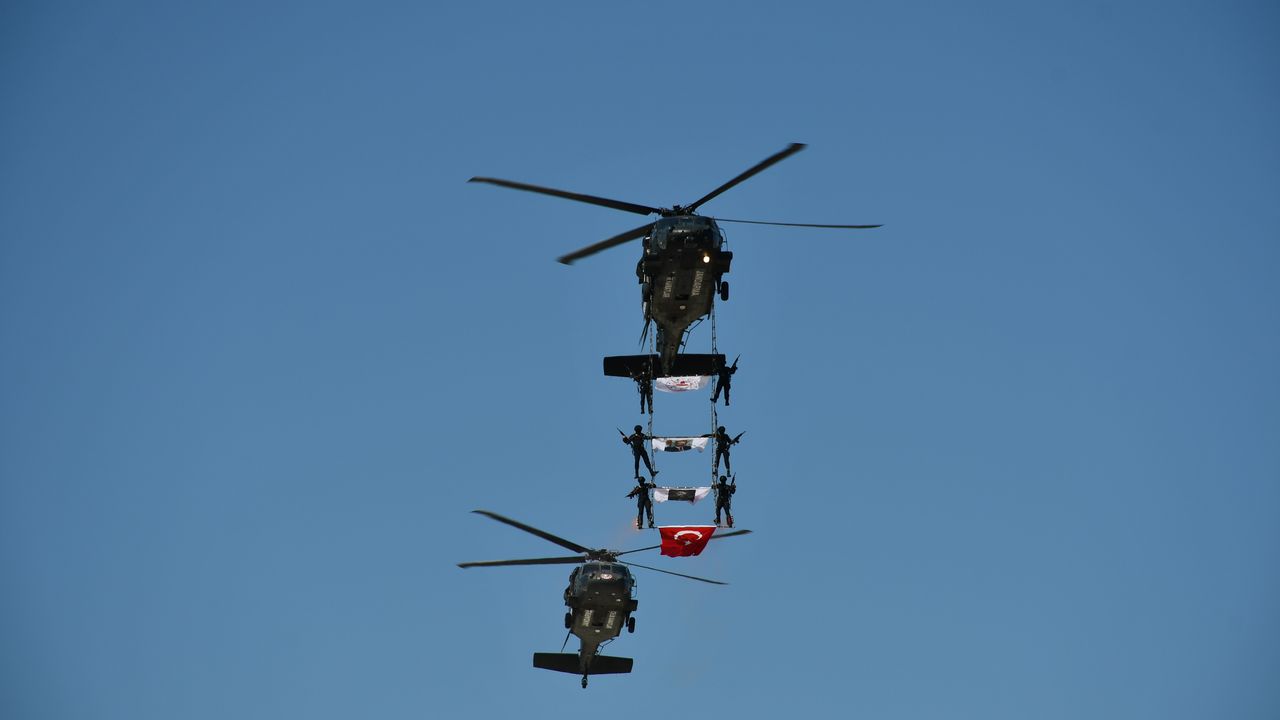 Jandarma Genel Komutanlığının helikopterlerle gerçekleştirdiği hava gösterisinin ardından Cumhurbaşkanı Recep Tayyip Erdoğan'ın gönderdiği mesaj okundu.