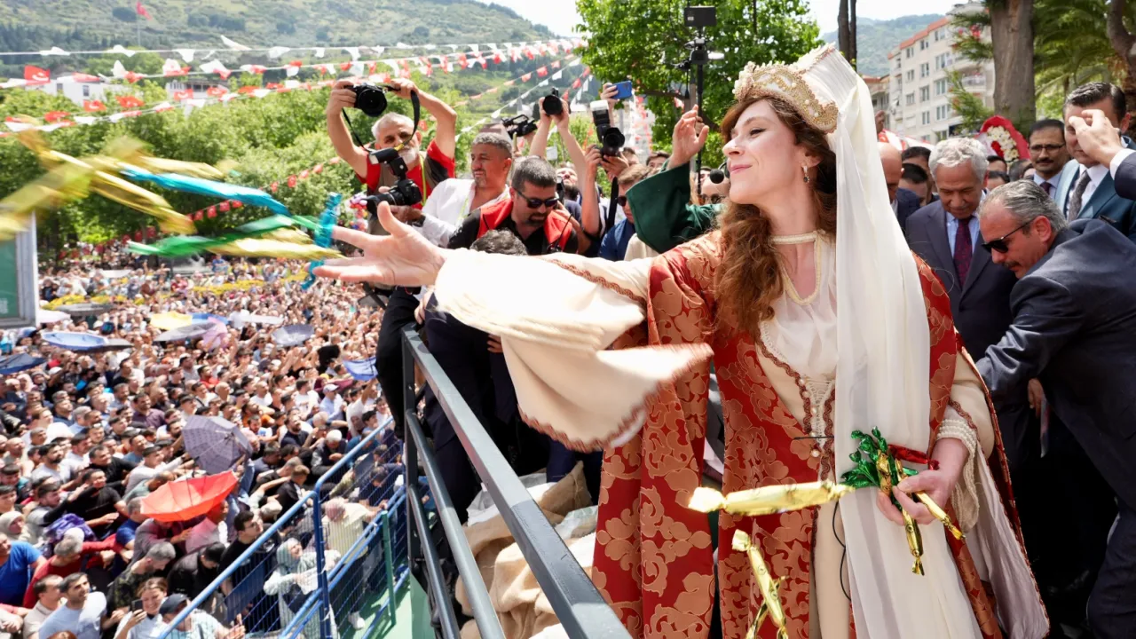 Kortej yürüyüşünün ardından şifalı mesir macunlarının saçımı öncesinde Hafsa Sultan’ın Merkez Efendi’ye berat vermesinin canlandırması yapıldı. Canlandırmanın ardından, mesir macunu saçım töreni gerçekleştirildi.
