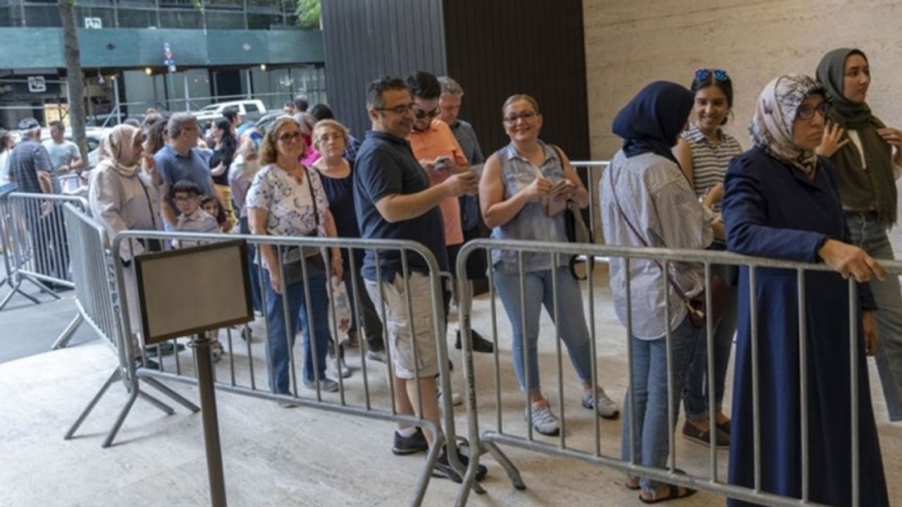 Oy kullanmaya gelen vatandaşlar Türkiye'nin New York Başkonsolosluğu önünde uzun kuyruklar oluşturdu.