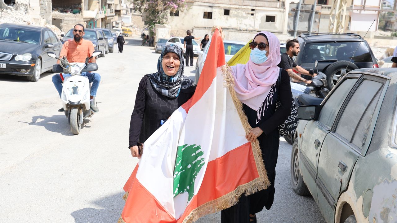 'Amerika büyük şeytandır' pankartları açan göstericiler, İsrail ordusunun kasabada öldürdüğü Hizbullah mensuplarının fotoğraflarını ve Hizbullah bayrakları taşıdı.