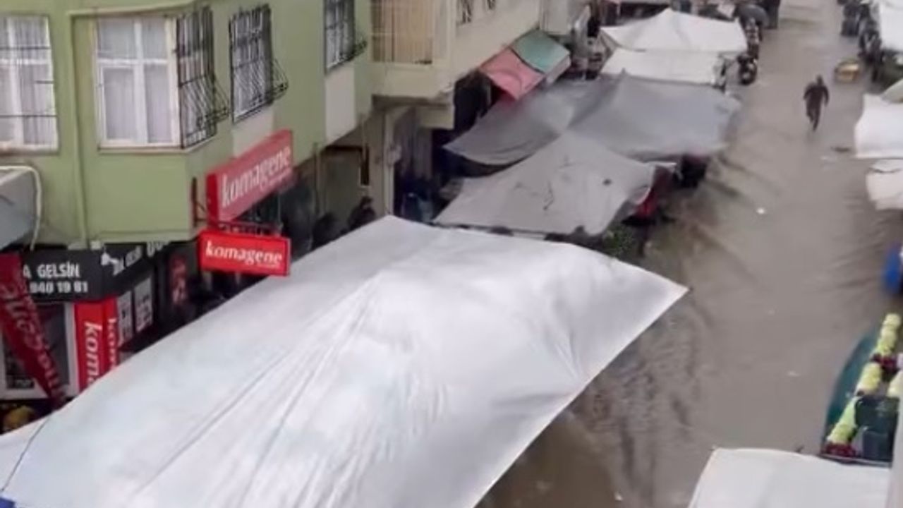 Kent merkezinde yaklaşık 15 dakika etkili olan sağanak nedeniyle yollar göle döndü, bazı ev ve iş yerlerini su bastı. Yağmura hazırlıksız yakalananlar, bina saçaklarının altına sığınarak korunmaya çalıştı. Sürücüler de yollarda zor anlar yaşadı. Seyhan ilçesi Yeşilyurt Mahallesi'nde de su basan pazar yerindeki esnaf, zor durumda kaldı. Sağanağın etkisini yitirmesi ile su çekildi. (DHA)