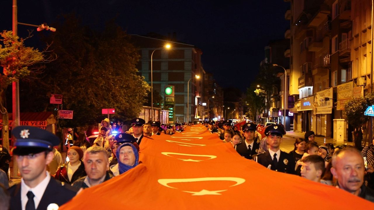 Gençlik ve Spor İl Müdürlüğü koordinasyonunda Eski Müze önünde ellerinde meşalelerle toplanan kalabalık, 1000 metre uzunluğunda Türk bayrağı açarak Kurtuluş Caddesi'nden Zafer Meydanı'na kadar yürüdü.