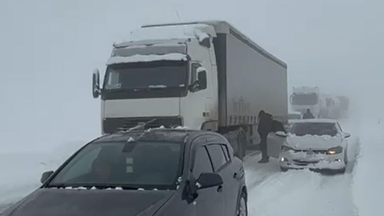 Ümit OKTAN/AĞRI, (DHA)- AĞRI ile Doğubayazıt'ı birbirine bağlayan kara yolunda, yoğun kar yağışı ve tipi nedeniyle onlarca araç yolda kaldı.