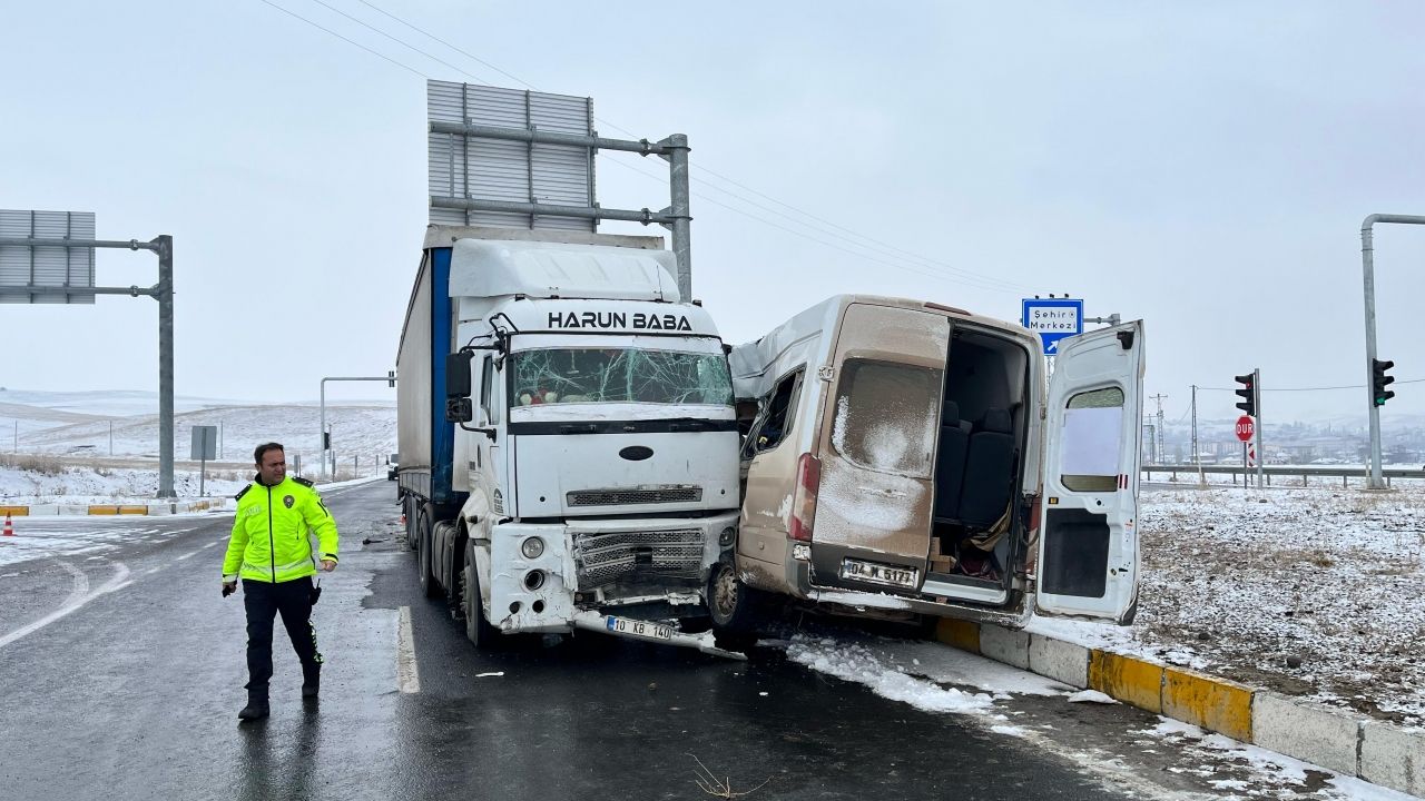AĞRI (AA) - Ağrı'nın Tutak ilçesinde tır ile minibüsün çarpışması sonucu 2'si ağır 8 kişi yaralandı.