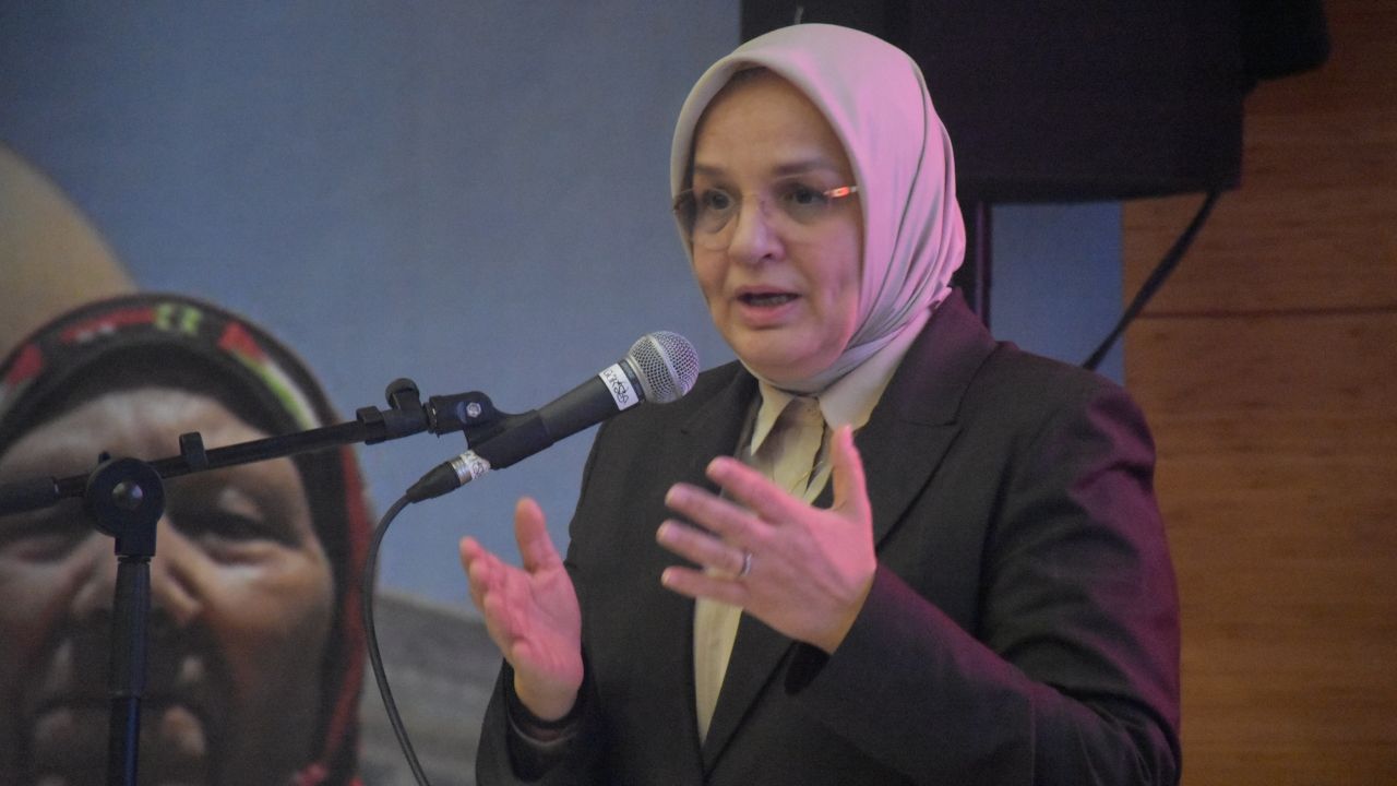 "Kamuda öğretmenler özellikle 28 Şubat sürecinde işlerinden oldular. Kamu personelleri işlerinden oldu. Uzunca bir süre çalışma hayatında olmadılar. Kadını eğitim hayatına sokmazsanız, çalışma hayatında yer vermezseniz, güçlü kadından ya da kadın haklarından nasıl bahsederseniz? Kamuda kadın verilerini buraya gelmeden aldım. Kamuda istihdam edilen personelin yüzde 49'u kadın. İşte diyoruz ya zaman zaman kadın devrimi diye. İşte o devrimlerden biri. Dün kadınları kamu kurumlarından, okullarından kapı önüne atanlar bugün 49 yapan, kamuda kadın istihdamını 49 yapan Tayyip Erdoğan'a kadın haklarından bahsediyor."