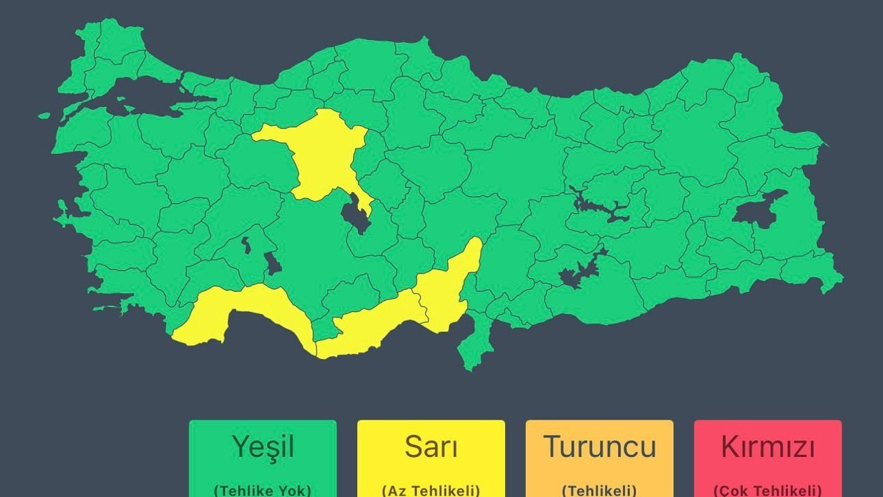 Bakanlığın sanal medya hesabından yapılan açıklamada, 'Meteoroloji Genel Müdürlüğü'nden alınan son bilgilere göre, 17 Nisan 2026 Cuma günü Mersin ve Adana çevrelerinde kuvvetli sağanak ve gök gürültülü sağanak yağış bekleniyor. Antalya çevrelerinde beklenen yağışların, akşam saatlerinden itibaren, kuvvetli sağanak ve gök gürültülü sağanak şeklinde olacağı tahmin ediliyor. 18 Nisan 2026 Cumartesi günü Ankara çevrelerinde beklenen sağanak, yer yer gök gürültülü sağanak yağışların, ilk saatlerden itibaren yerel olarak kuvvetli olacağı tahmin ediliyor. Vatandaşlarımızın ani sel, su baskını, yıldırım, yerel dolu, toz taşınımı ile birlikte çamur şeklinde yağış, ulaşımda aksamalar, yağış anında kuvvetli rüzgar ve fırtına ile hortum gibi olumsuzluklara karşı dikkatli ve tedbirli olmasını; yetkili mercilerin uyarılarını dikkate almalarını önemle hatırlatıyoruz' denildi. (DHA)