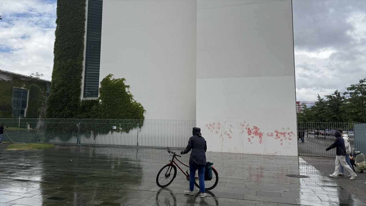 BERLİN (AA) - Almanya'nın başkenti Berlin'deki Filistin destekçileri, Gazze'deki soykırıma dikkati çekmek ve Almanya'nın İsrail'e verdiği askeri desteği protesto etmek için Başbakanlık binasının ön cephesine kırmızı boya sürdü.