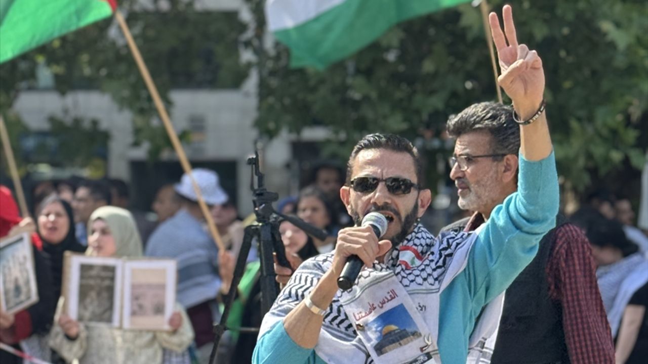 Burada bir konuşma yapan Thomas adlı Yahudi, İsrail'in Gazze'deki katliamlarını sert bir dille eleştirdi.