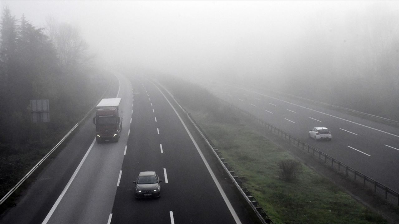 DÜZCE (AA) - Anadolu Otoyolu'nun Düzce geçişinde sis, görüş mesafesini azalttı.
