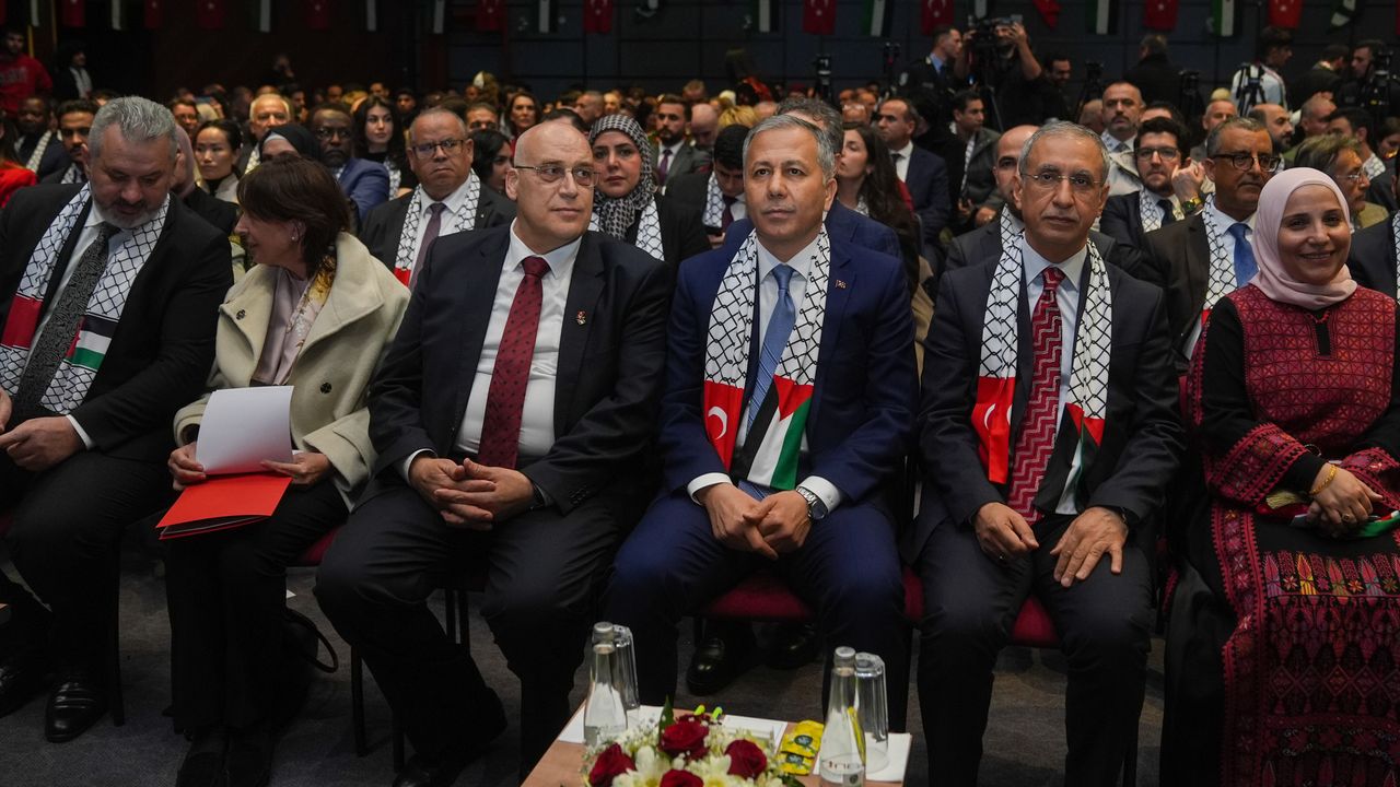 Türk-Japon Vakfı'nda düzenlenen 29 Kasım Filistin Halkıyla Uluslararası Dayanışma Günü etkinliğine, İçişleri Bakanı Ali Yerlikaya, Filistin'in yeni Ankara Büyükelçisi Nasri Abu Jaish, HÜDA PAR Genel Başkanı Zekeriya Yapıcıoğlu, Birleşmiş Milletler (BM) ve Arap Birliği temsilcileri ile Ankara'daki yabancı misyon temsilcileri, siyasi parti yetkilileri ve birçok davetli katıldı.