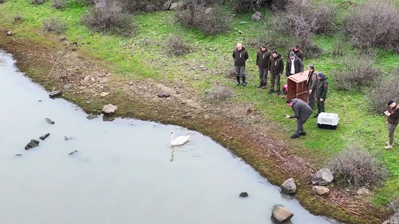 Ankara'daki tedavisi tamamlanan kuğunun Edirne'de Gala Gölü'ne bırakılmasına ilişkin Doğa Koruma ve Milli Parklar (DKMP) Genel Müdürlüğü'nün sanal medya hesabından açıklama yapıldı. Açıklamada, 'Geçtiğimiz ocak ayında Ankara Elmadağ'da bir evin bahçesine düşen kuğu, ekiplerimizce tedavi altına alınmıştı. Yapılan incelemelerde, kuğunun göç esnasında su bulunmayan bir alana iniş yaptığı ve güçten düştüğü belirlendi. Ankara'daki tedavi ve rehabilitasyon sürecinin ardından kuğu, Edirne'de doğal yaşam alanı olan Gala Gölü'ne salınarak yeniden suyla buluşturuldu. Yaban hayatı için çalışmalarımızı kararlılıkla sürdürüyoruz' denildi. (DHA)