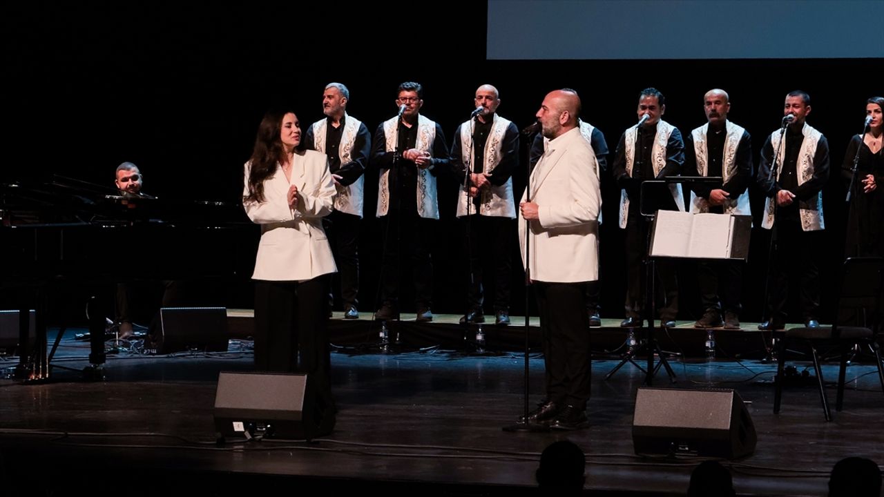 Depremlerde memleketi Hatay'da 16 yakınını kaybeden sanatçı Karsu da koroyla beraber sahneye çıktı.