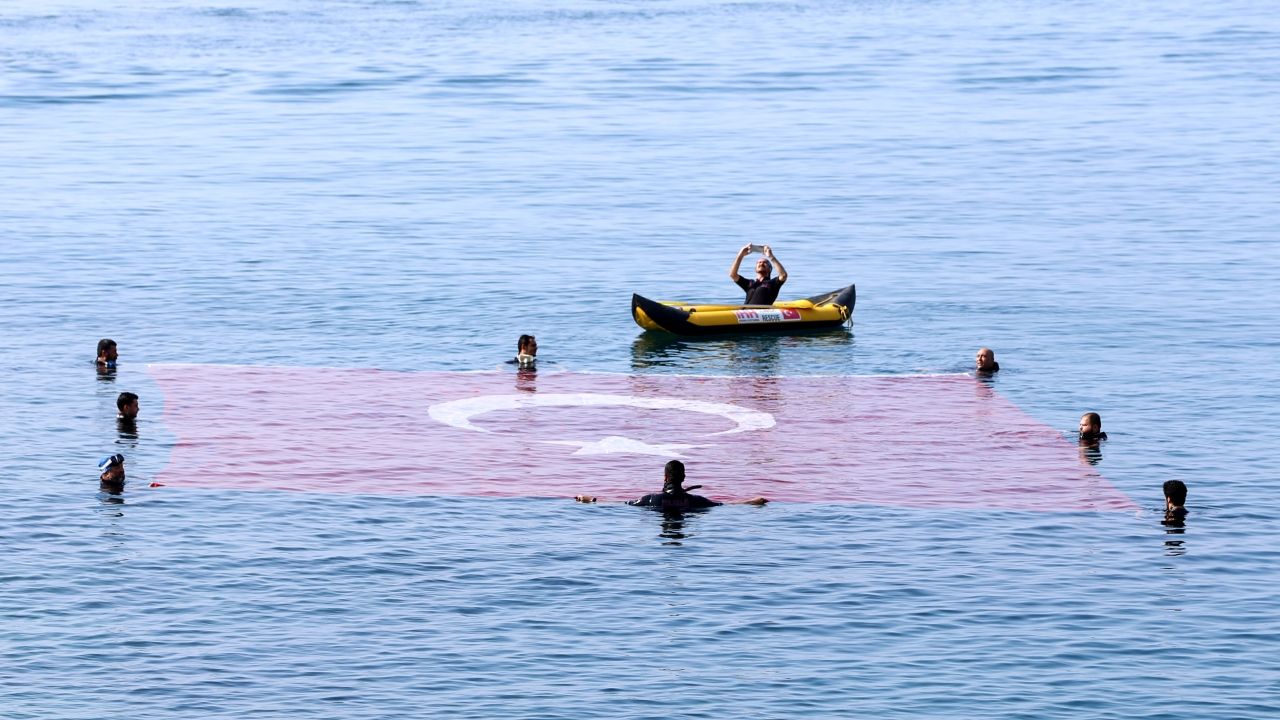 Kaleiçi Yat Limanı'nda 10 kişilik dalgıç ekibi tarafından deniz yüzeyinde 9x16 metre ölçülerinde Türk bayrağı açılmasının ardından, su altında çeşitli etkinlikler gerçekleştirildi.