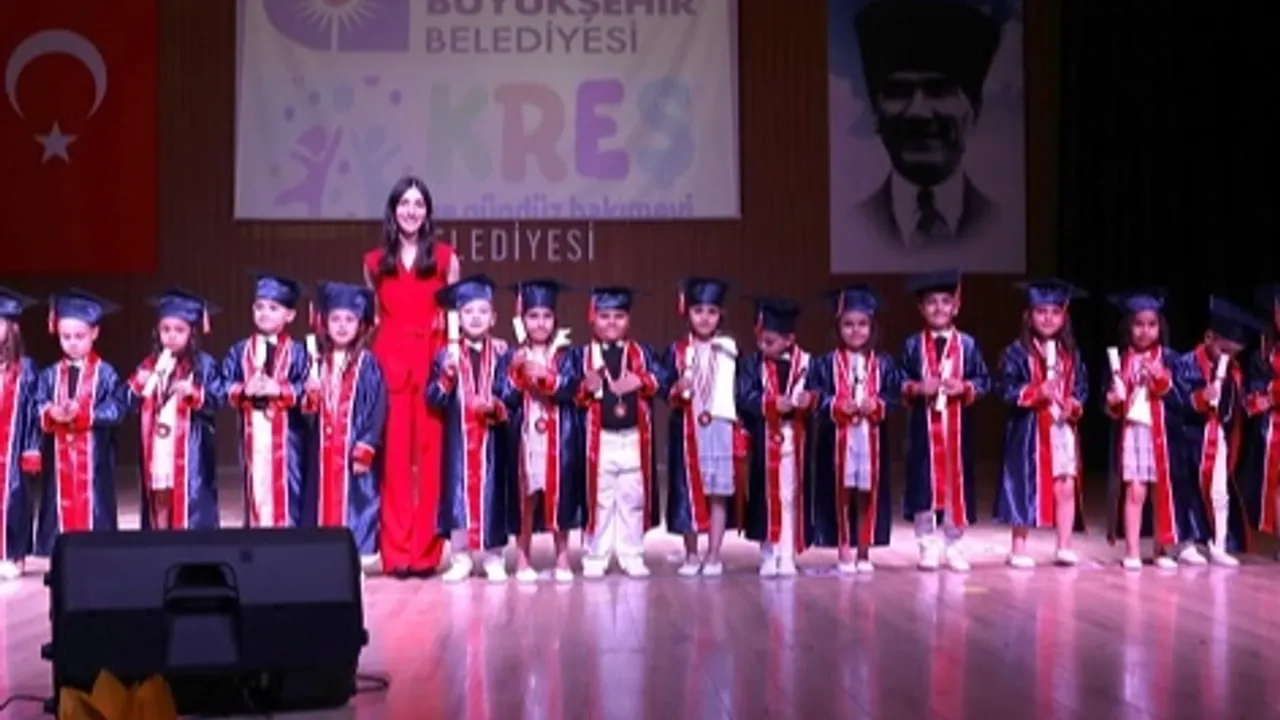 Antalya Büyükşehir Belediyesi’ne bağlı tam zamanlı kreşlerden biri olan Kumluca Gündüz Bakımevi ve Kreşi, yılsonu etkinliği ve mezuniyet töreniyle öğrencilerine unutulmaz bir gün yaşattı. Mehmet ŞENTÜRK / ANTALYA (İGFA)- Antalya Büyükşehir Belediyesi Sosyal Hizmetler Dairesi Başkanlığı’na bağlı kreşte eğitim gören minikler için Kumluca Mehmet Akif Ersoy Kültür ve Sanat Merkezi'nde düzenlenen törende, minik öğrenciler sahne performanslarıyla izleyenlerden büyük alkış aldı.