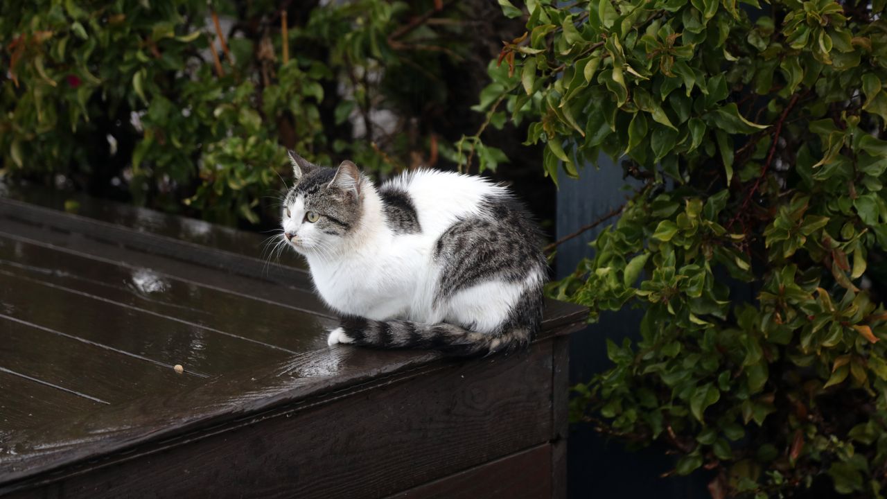 Olumsuz hava koşulları, sokak hayvanlarını da etkiledi. Yağmurdan korunmak isteyen kedi ve köpekler bina girişleri, kapalı otoparklar ve güvenli alanlara sığınarak yağışın dinmesini bekledi. (DHA)