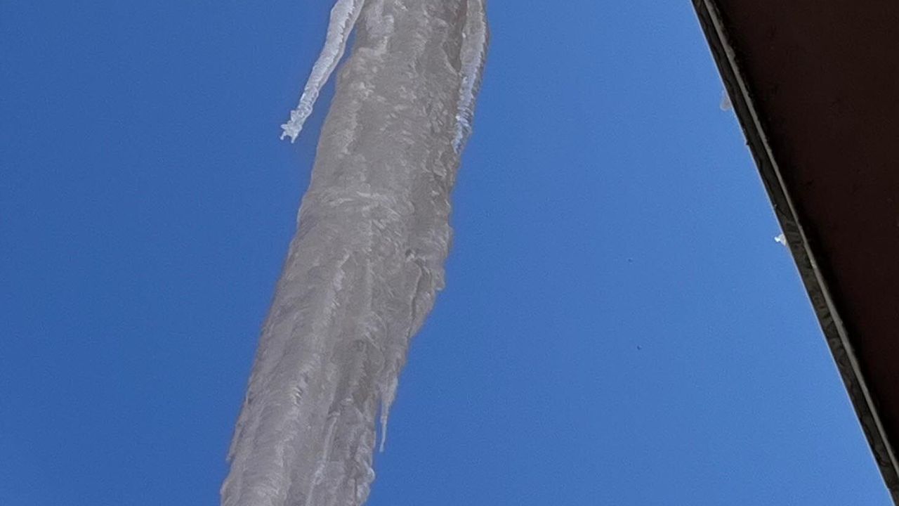 Deniz BAŞLI/ARDAHAN, (DHA)- ARDAHAN'da etkili olan soğuklarda bazı binaların çatı ve saçaklarında 4-5 metreyi bulan buz sarkıtları oluştu. Ardahan Belediyesi, hava sıcaklıklarının eksi 15 ila 20 derece arasında seyrettiği kent merkezinde binaların çatılarında oluşan dev buz kütlelerini temizliyor.