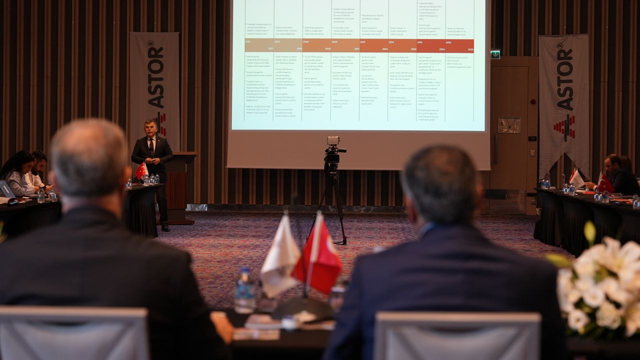 Astor Enerji Genel Müdür Yardımcısı Olcay Doğan, toplantıda yaptığı sunumda, '2025 yılının ilk yarısında finansal ve operasyonel performansımızı güçlendirdik. Yurt dışı satışlarımızın toplam gelirlerde yüzde 50'ye ulaşması, global pazarlardaki konumumuzu daha da sağlamlaştırdı. Önümüzdeki dönemde kapasite artırımı, yeni yatırımlar ve AR-GE çalışmalarımızla büyümemizi sürdüreceğiz.' değerlendirmesinde bulundu.