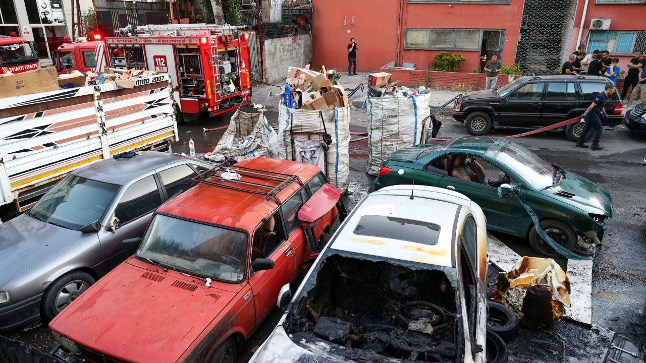 Kısa sürede büyüyen alevler, sanayi sitesinde tamir için bekleyen diğer otomobiller ile bir otelin açık otoparkındaki araçlara da sıçradı.