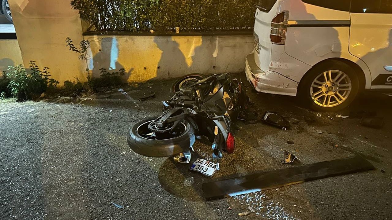 Çarpmanın etkisiyle savrulan motosiklet, park halindeki hafif ticari araca çarparak durabildi.
