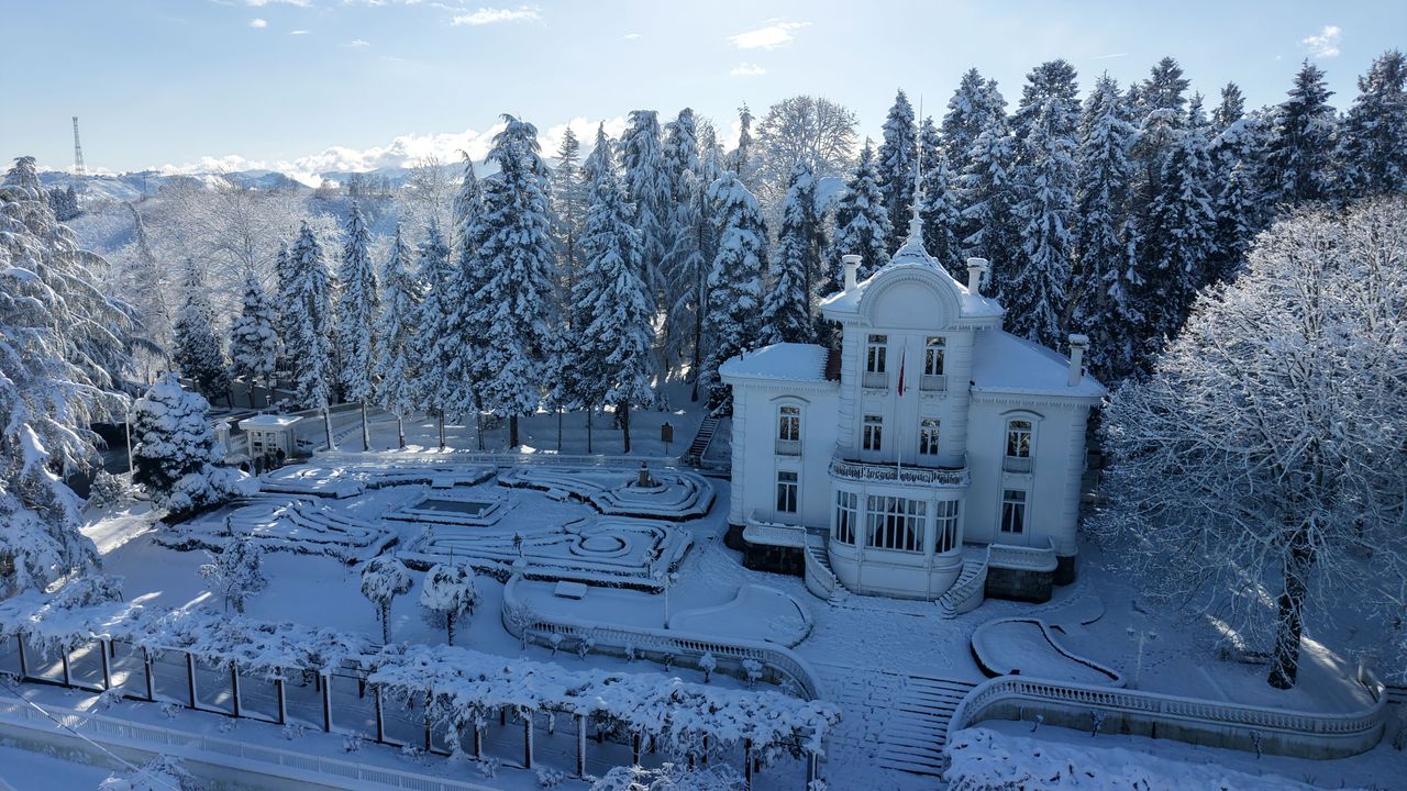 Trabzon'un önemli tarihi ve turistik mekanlarından Atatürk Köşkü, kar yağışının ardından beyaza büründü. Köşk ve çevresi dronla görüntülenirken, çocukların eğlencesiyle ortaya güzel görüntüler çıktı.Kentte kar yağışı etkili oldu. Trabzon Büyükşehir Belediyesi Yol Yapım Bakım ve Onarım Dairesi Başkanlığı ekipleri, kapanan yolların açılması için çalışmalarını sürdürürken, okullarda 1 gün eğitime ara verildi. Kentin önemli tarihi ve turistik mekanlarından, Gazi Mustafa Kemal Atatürk'ün konaklayıp, vasiyetini yazdığı Atatürk Köşkü de beyaza büründü. Çevresi beyaz örtüyle kaplanan köşkte kar kalınlığı 15 santimetreye ulaşırken, ziyaretçiler tarihi yapı ve çevresindeki doğayı fotoğrafladı. Köşk ve çevresinde kar güzelliği de dron kamerasıyla görüntülendi.Selçuk BAŞAR-Efnan DEMİREREN/TRABZON, (DHA)-