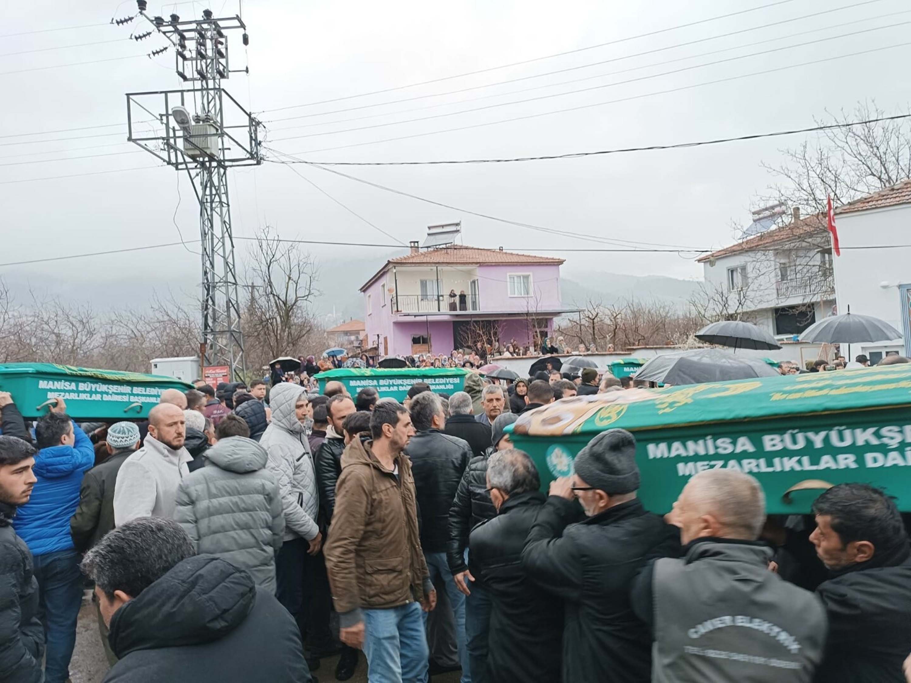 Manisa'nın Turgutlu ilçesinde Ömer Coşkun (26) tarafından öldürülen Sariye Nur Coşkun (22), Musa Girgin (51), Fatma Girgin (43) ve Yusuf Can Girgin (13) için Turgutlu'daki Kabaçınar Camii önünde cenaze töreni düzenlendi. Cenazeye hayatını kaybedenlerin yakınlarının yanı sıra Turgutlu Kaymakamı Selami Kapankaya ve vatandaşlar katıldı. İkindi vakti İlçe Müftüsü Ömer Çoban'ın kıldırdığı namazın ardından cenazeler, Kabaçınar Mezarlığında toprağa verildi.