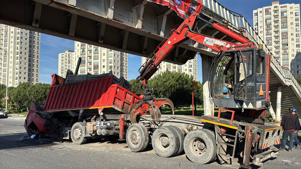 İSTANBUL (AA) - Avcılar'da vincin üst geçide çarpması sonucu 2 kişi yaralandı.