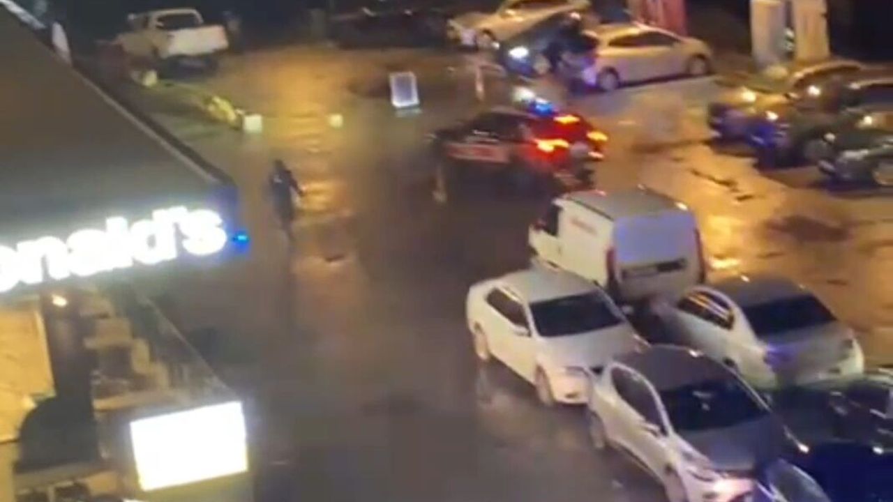 O anlar, AVM'deki bir müşteri tarafından cep telefonuyla görüntülendi. Kavgada yaralanıp hastaneye başvuranın da olmadığı belirtildi. Olayla ilgili soruşturma sürüyor. (DHA)