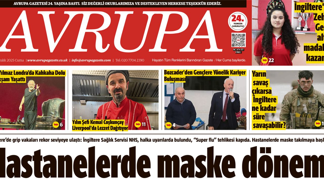 AVRUPA AJANSI (AVA) LONDRA - Avrupa Gazetesi 5 Aralık 2025 Baskısı dün gece çıktı, dağıtıldı. Londra'da açık olan tüm Türk marketleri, Süpermarket, Gıda Toptancıları bayilerinde bulabilirsiniz.... 23 Yıldır aynı heyecan ve istekle gazetemiz Londra’da her hafta basılıyor, dağıtılıyor.