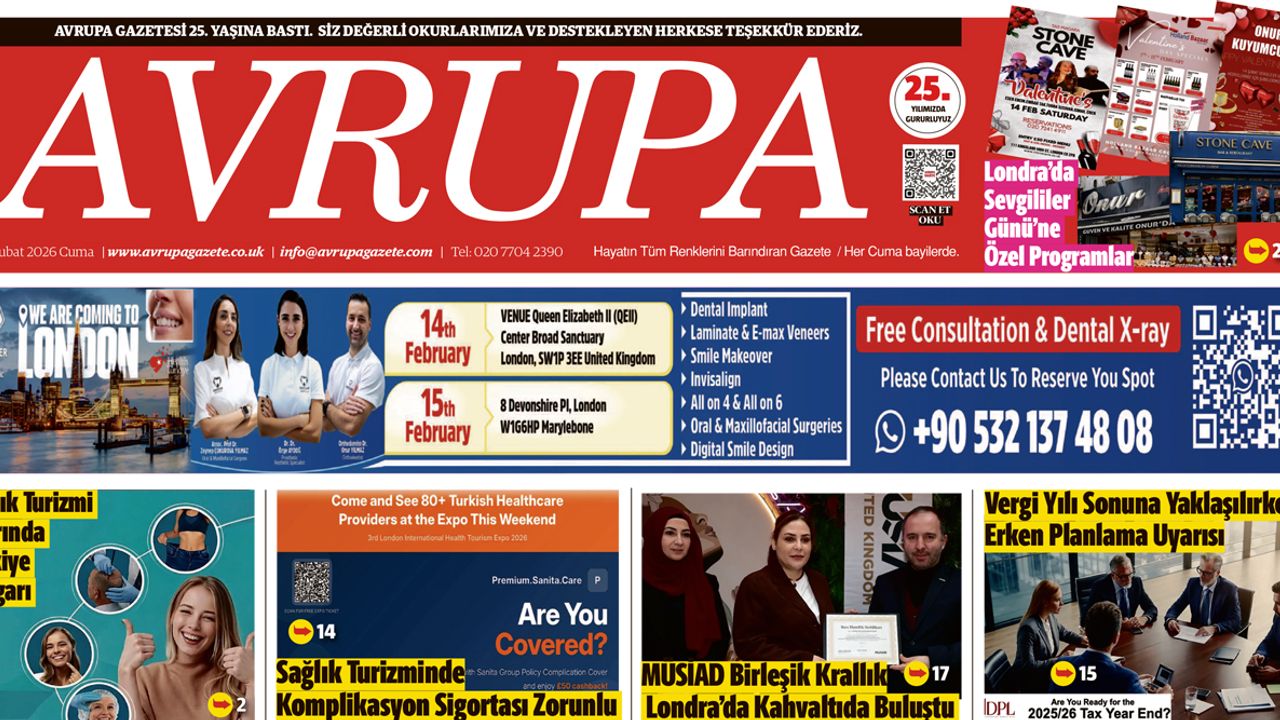 AVRUPA AJANSI (AVA) LONDRA - Avrupa Gazetesi 13 Şubat 2026 Baskısı dün gece çıktı, dağıtıldı. Londra'da açık olan tüm Türk marketleri, Süpermarket, Gıda Toptancıları bayilerinde bulabilirsiniz.... 24 Yıldır aynı heyecan ve istekle gazetemiz Londra’da her hafta basılıyor, dağıtılıyor. Avrupa Gazetesi Baskısı E-gazete sayfaları, 24. Yıla merhaba