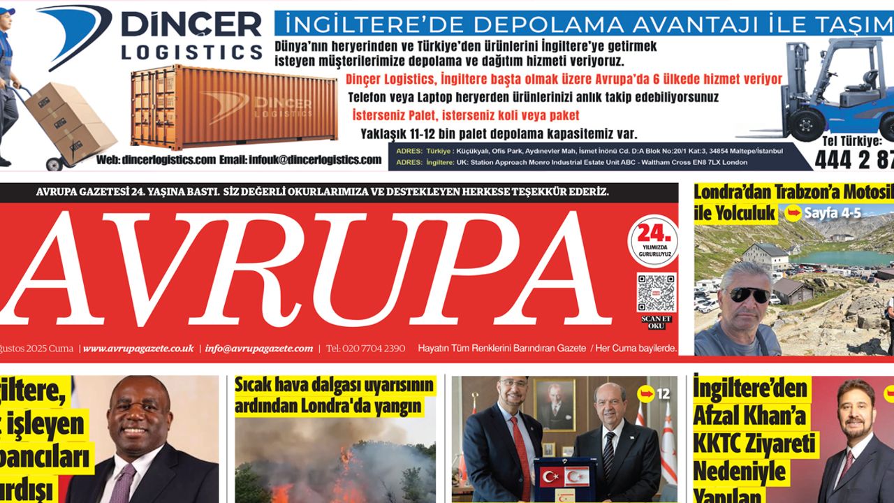 AVRUPA AJANSI (AVA) LONDRA - Avrupa Gazetesi 15 Ağustos 2025 Baskısı dün gece çıktı, dağıtıldı. Londra'da açık olan tüm Türk marketleri, Süpermarket, Gıda Toptancıları bayilerinde bulabilirsiniz.... 23 Yıldır aynı heyecan ve istekle gazetemiz Londra’da her hafta basılıyor, dağıtılıyor.