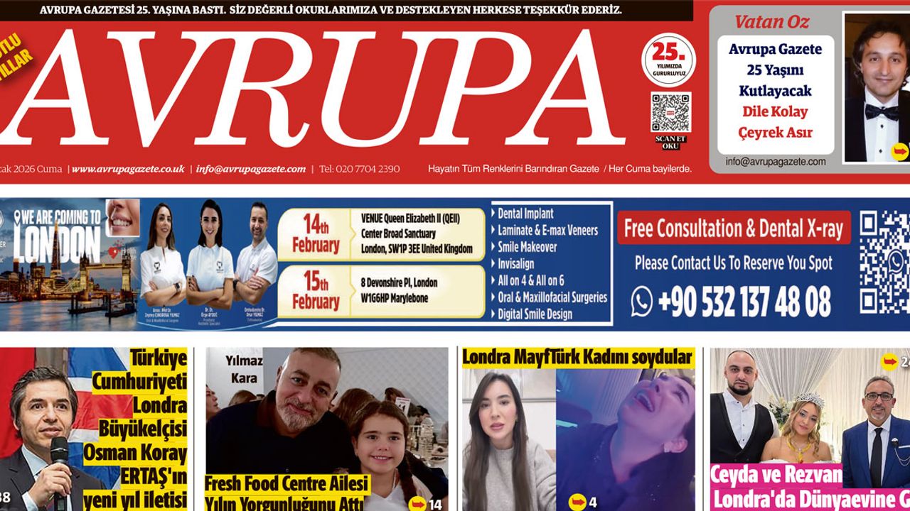 AVRUPA AJANSI (AVA) LONDRA - Avrupa Gazetesi 2 Ocak 2026 Baskısı dün gece çıktı, dağıtıldı. Londra'da açık olan tüm Türk marketleri, Süpermarket, Gıda Toptancıları bayilerinde bulabilirsiniz.... 24 Yıldır aynı heyecan ve istekle gazetemiz Londra’da her hafta basılıyor, dağıtılıyor. Avrupa Gazetesi Baskısı E-gazete sayfaları, 24. Yıla merhaba