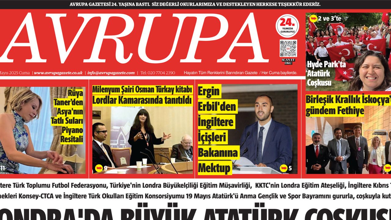 AVRUPA AJANSI (AVA) LONDRA - Avrupa Gazetesi 23 Mayıs 2025 Baskısı dün gece çıktı, dağıtıldı. Londra'da açık olan tüm Türk marketleri, Süpermarket, Gıda Toptancıları bayilerinde bulabilirsiniz.... 23 Yıldır aynı heyecan ve istekle gazetemiz Londra’da her hafta basılıyor, dağıtılıyor.