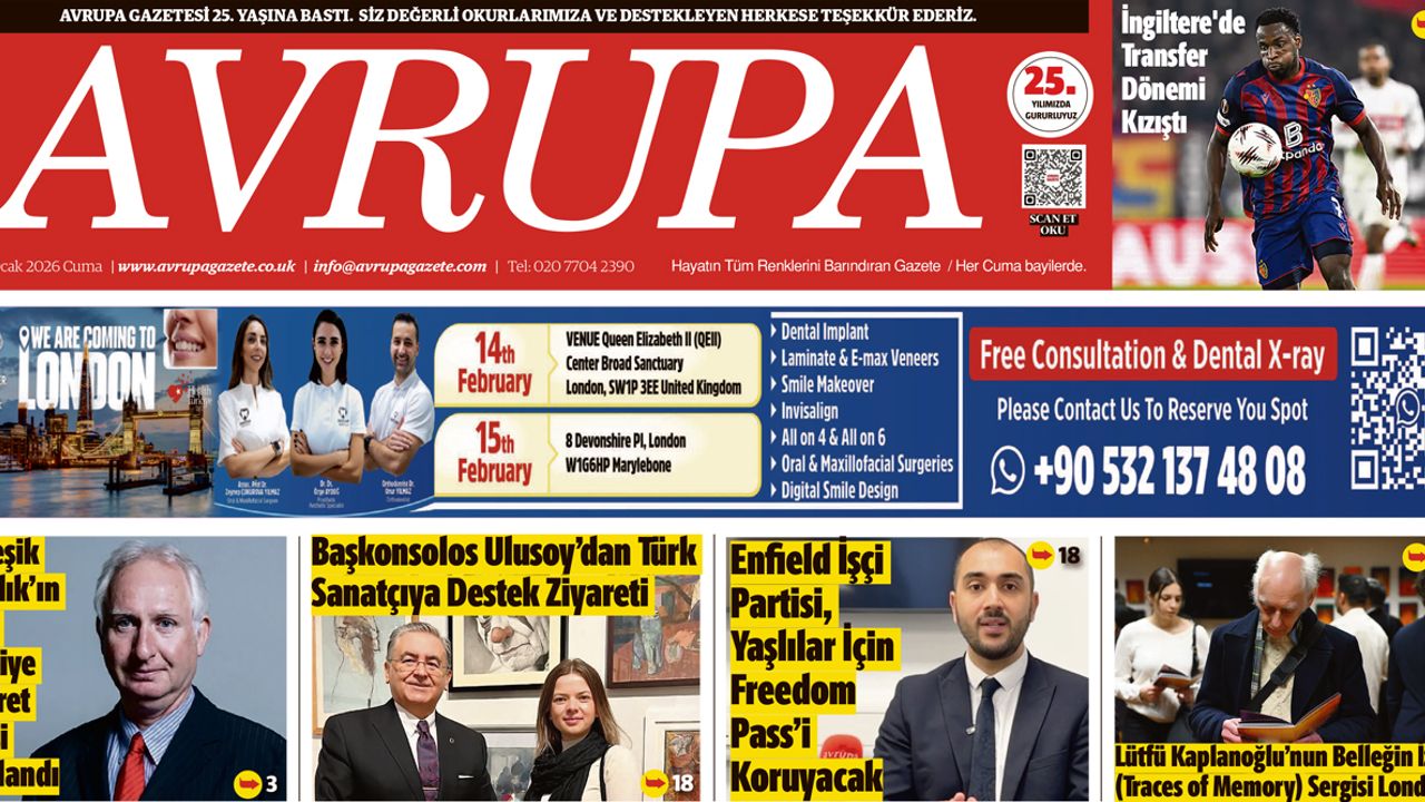 AVRUPA AJANSI (AVA) LONDRA - Avrupa Gazetesi 23 Ocak 2026 Baskısı dün gece çıktı, dağıtıldı. Londra'da açık olan tüm Türk marketleri, Süpermarket, Gıda Toptancıları bayilerinde bulabilirsiniz.... 24 Yıldır aynı heyecan ve istekle gazetemiz Londra’da her hafta basılıyor, dağıtılıyor. Avrupa Gazetesi Baskısı E-gazete sayfaları, 24. Yıla merhaba