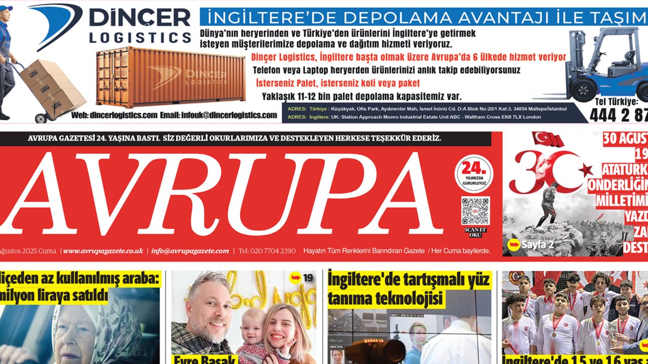 AVRUPA AJANSI (AVA) LONDRA - Avrupa Gazetesi 29 Ağustos 2025 Baskısı dün gece çıktı, dağıtıldı. Londra'da açık olan tüm Türk marketleri, Süpermarket, Gıda Toptancıları bayilerinde bulabilirsiniz.... 23 Yıldır aynı heyecan ve istekle gazetemiz Londra’da her hafta basılıyor, dağıtılıyor.