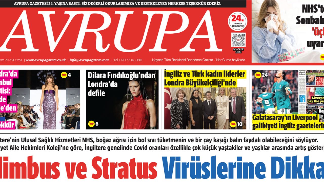 AVRUPA AJANSI (AVA) LONDRA - Avrupa Gazetesi 3 Ekim 2025 Baskısı dün gece çıktı, dağıtıldı. Londra'da açık olan tüm Türk marketleri, Süpermarket, Gıda Toptancıları bayilerinde bulabilirsiniz.... 23 Yıldır aynı heyecan ve istekle gazetemiz Londra’da her hafta basılıyor, dağıtılıyor.