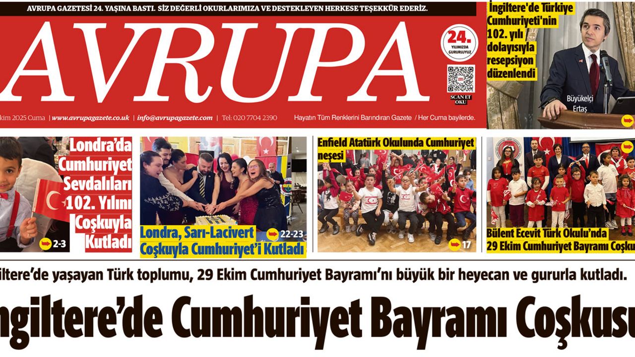 AVRUPA AJANSI (AVA) LONDRA - Avrupa Gazetesi 31 Ekim 2025 Baskısı dün gece çıktı, dağıtıldı. Londra'da açık olan tüm Türk marketleri, Süpermarket, Gıda Toptancıları bayilerinde bulabilirsiniz.... 23 Yıldır aynı heyecan ve istekle gazetemiz Londra’da her hafta basılıyor, dağıtılıyor.