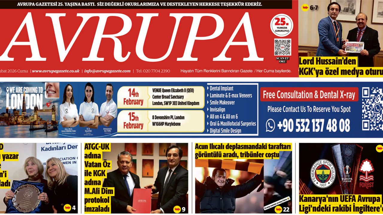 AVRUPA AJANSI (AVA) LONDRA - Avrupa Gazetesi 6 Şubat 2026 Baskısı dün gece çıktı, dağıtıldı. Londra'da açık olan tüm Türk marketleri, Süpermarket, Gıda Toptancıları bayilerinde bulabilirsiniz.... 24 Yıldır aynı heyecan ve istekle gazetemiz Londra’da her hafta basılıyor, dağıtılıyor. Avrupa Gazetesi Baskısı E-gazete sayfaları, 24. Yıla merhaba