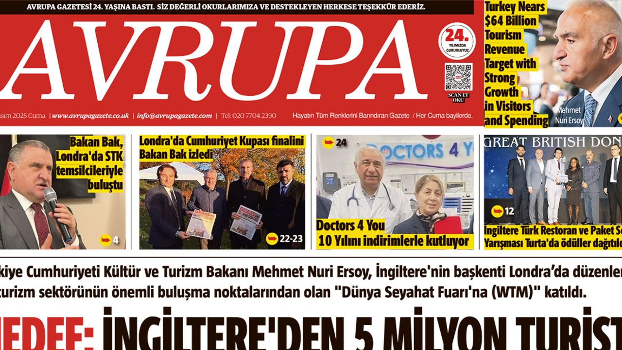 AVRUPA AJANSI (AVA) LONDRA - Avrupa Gazetesi 7 Kasım 2025 Baskısı dün gece çıktı, dağıtıldı. Londra'da açık olan tüm Türk marketleri, Süpermarket, Gıda Toptancıları bayilerinde bulabilirsiniz.... 23 Yıldır aynı heyecan ve istekle gazetemiz Londra’da her hafta basılıyor, dağıtılıyor.