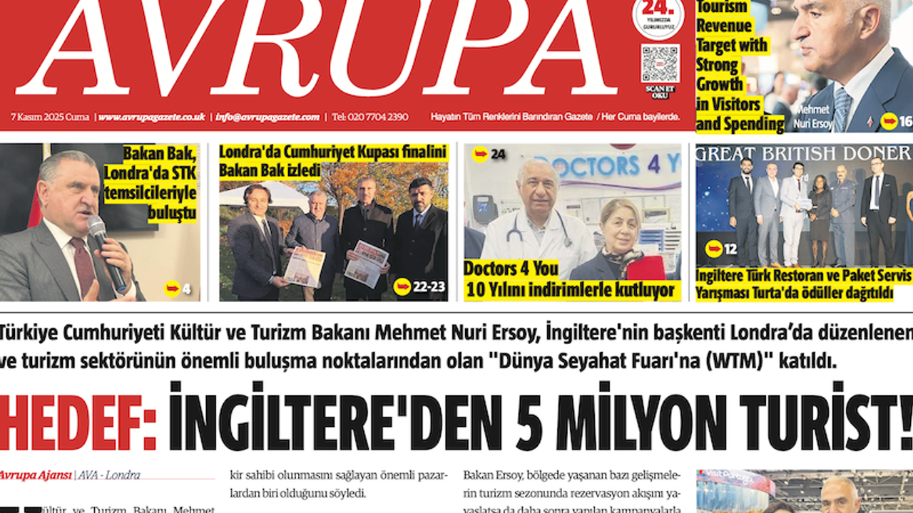 AVRUPA AJANSI (AVA) LONDRA - Avrupa Gazetesi 8 Kasım 2025 Baskısı dün gece çıktı, dağıtıldı. Londra'da açık olan tüm Türk marketleri, Süpermarket, Gıda Toptancıları bayilerinde bulabilirsiniz.... 23 Yıldır aynı heyecan ve istekle gazetemiz Londra’da her hafta basılıyor, dağıtılıyor.