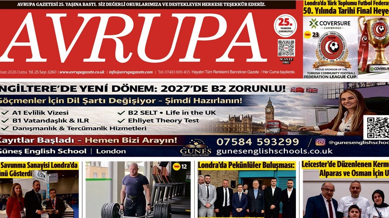 AVRUPA AJANSI (AVA) LONDRA - Avrupa Gazetesi 17 Nisan 2026 Baskısı dün gece çıktı, dağıtıldı. Londra'da açık olan tüm Türk marketleri, Süpermarket, Gıda Toptancıları bayilerinde bulabilirsiniz.... 25 Yıldır aynı heyecan ve istekle gazetemiz Londra’da her hafta basılıyor, dağıtılıyor. Avrupa Gazetesi Baskısı E-gazete sayfaları