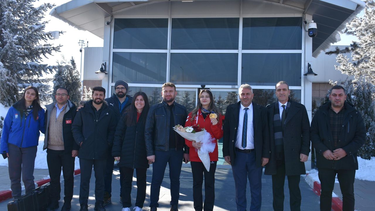 Ermenistan'ın Erivan kentinde 27 Şubat - 05 Mart 2026 tarihleri arasında düzenlenen Havalı Silahlar Avrupa Şampiyonası'nda milli sporcular önemli başarılara imza attı. Türkiye, şampiyonayı 2 altın, 3 gümüş ve 2 bronz olmak üzere toplam 7 madalya ile tamamladı. Şampiyonada, '10 Metre Havalı Tüfek Solo Büyük Kadınlar' kategorisinde yarışan Damla Köse, 56 puan alarak altın madalya kazandı. Köse, Havalı Tüfek Kadınlar kategorisinde Türkiye'ye ilk Avrupa şampiyonluğunu kazandırdı. Erzurum Teknik Üniversitesi (ETÜ) Spor Bilimleri Fakültesi Yüksek Lisans öğrencisi olan şampiyon atıcı Damla Köse Erzurum Hava Limanı'nda çiçeklerle karşılandı. ETÜ Rektörü Prof. Dr. Bülent Çakmak, ETÜ Spor Bilimleri Fakültesi Dekanı Prof. Dr. Serhat Özbay, Milli Sporcu Doç. Dr. Cebrail Gençoğlu, Gençlik ve Spor İl Müdürlüğü Sicil ve Lisans Şube Müdürü Hakan Kaya, Spor Şefi Ufuk Purutçu ve sporcular, başarılı atıcıyı tebrik etti. Şampiyonluğu Ermenistan'da aldığı için çok gururlu olduğunu söyleyen Damla Köse, 'istiklal Marşı'nı okutmak benim çok büyük bir hayalimdi. Giderken en büyük düşüncem buydu. Orada İstiklal Marşı'nı okutup Türk Bayrağı'nı orada açmaktı. Çok şükür bana nasip oldu. Bu tabi ki tarihte bir ilk oldu. İlk defa Avrupa Şampiyonasında kendi kategorimde altın madalya alındı. Aynı zamanda takım olarak da gümüş madalya aldık kadın tüfek takımı olarak. Bu da tarihte bir ilk oldu. Geçen sene aynı kategoride gümüş madalya almıştım. Altını kıl payı kaçırmıştım. Bu sene çok şükür altın aldım ve döndüm Avrupa Şampiyonu olarak çok mutluyum' diye konuştu. Şampiyon atıcı kendini karşılamaya gelenlerle hatıra fotoğrafı çektirdi. (DHA)