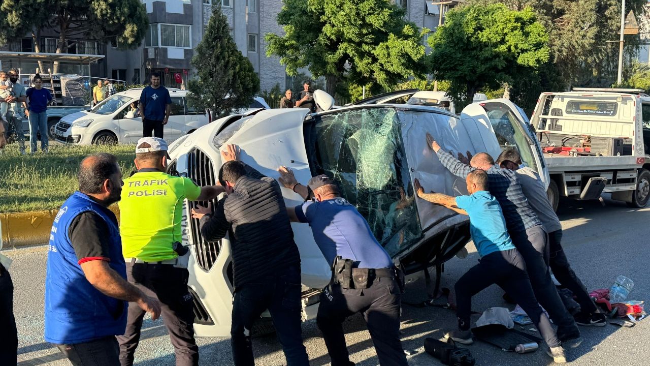 Çarpışmanın etkisiyle savrulan otomobil, refüje çarparak takla attı.
