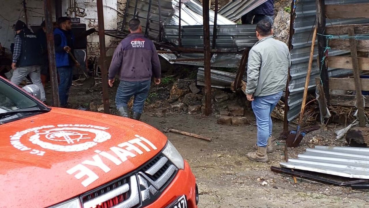 Efeler ilçesine bağlı Ambarcık Mahallesi'nde öğle saatlerinde etkili olan sağanak yağmur sonrası toprağın yumuşaması nedeniyle bir evin bahçesinde bulunan istinat duvarı çöktü. İsa Çiftçi'ye ait 4 koyun yıkılan duvarı altında kaldı. Yapılan kontrollerde, göçük altında kalan hayvanların öldüğü belirlendi. İhbar üzerine olay yerine belediye ve jandarma ekipleri sevk edildi. Ekipler, çevrede güvenlik önlemi alırken, toprak kaymasının devam etme riskine karşı inceleme başlatıldı. Yağış sürerken, mahallede riskli yapılar için vatandaşlara dikkatli olmaları yönünde uyarılarda bulunuldu. İtfaiye ve belediye ekipleri ölen hayvanları iş makinası ile çıkardı. (DHA)